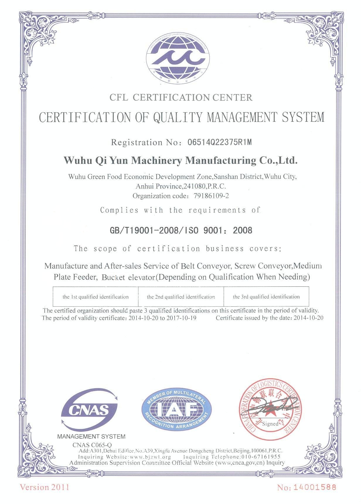 擁有專利特有技術的“蕪起”牌斗式提升機以其優秀的品質、優越的環保性獲得用戶的青睞。產品遍布全國。。。。